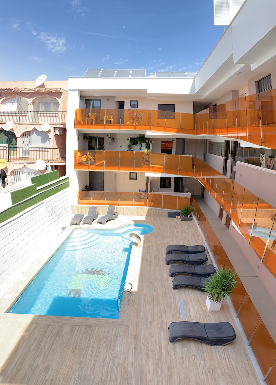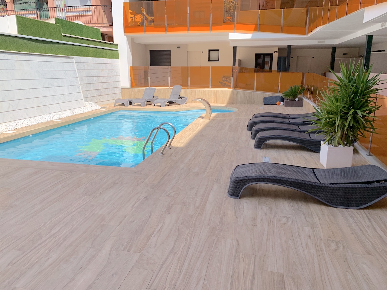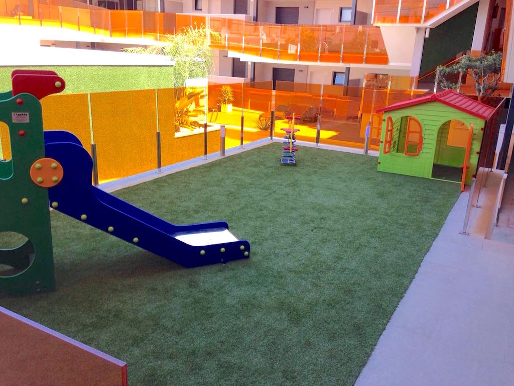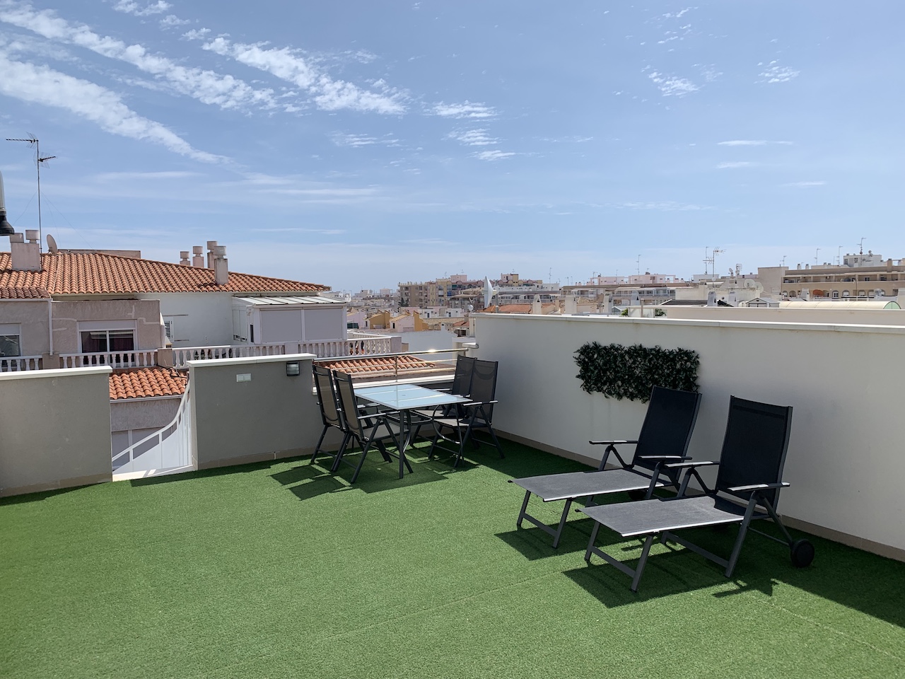 The roof terrace has sun loungers, a grill, a dining area and a shower, and the artificial grass added to the roof terrace adds to the comfort. The condominium has a fitness area, a sauna and a children’s play area. Consum grocery store about 200 meters away.