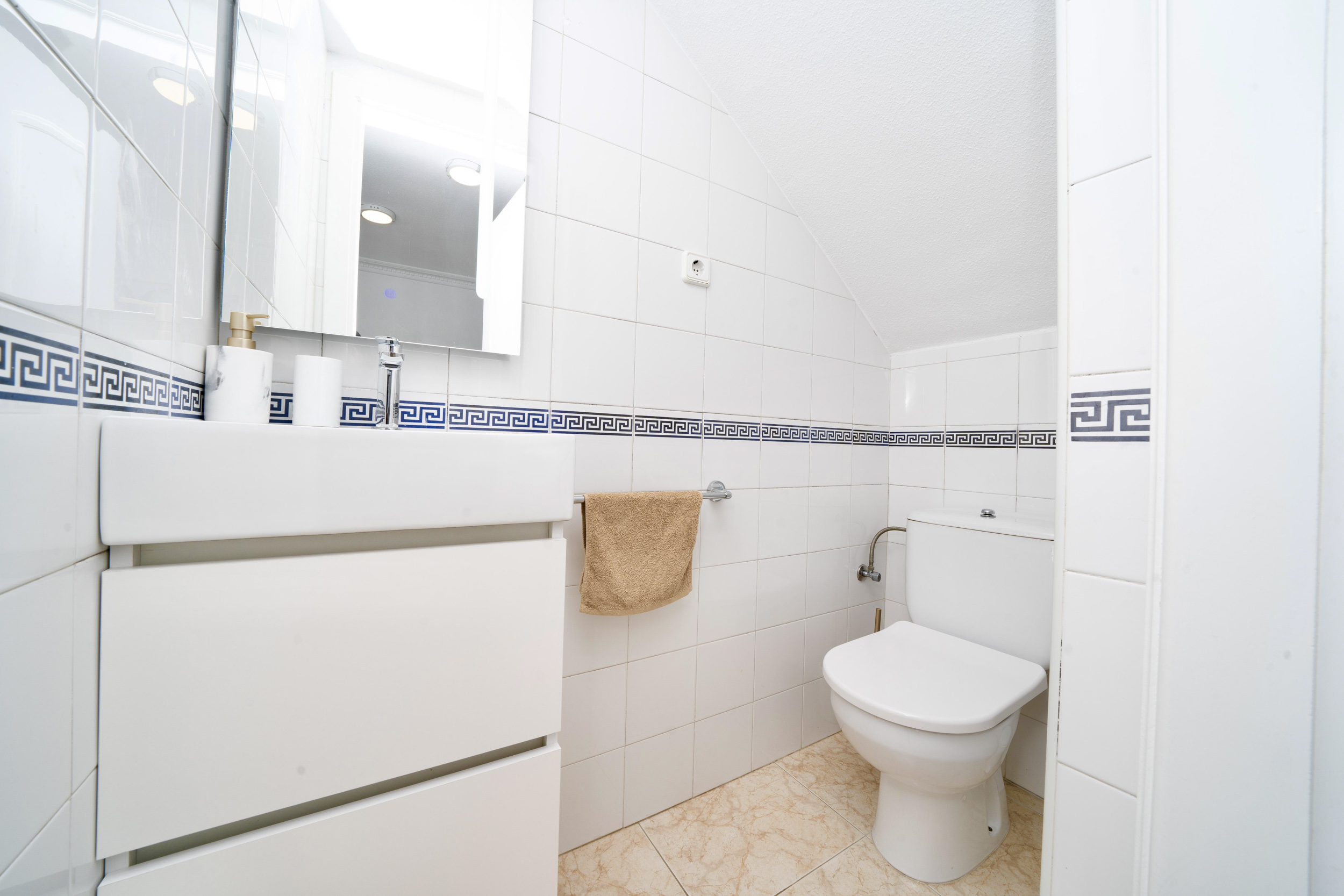 Cozy and bright duplex apartment, located less than 260 meters from the Mediterranean Sea in the unique area of Torrevieja. On the first floor, living room/dining room, kitchen and toilet. The second floor has two bedrooms and a bathroom