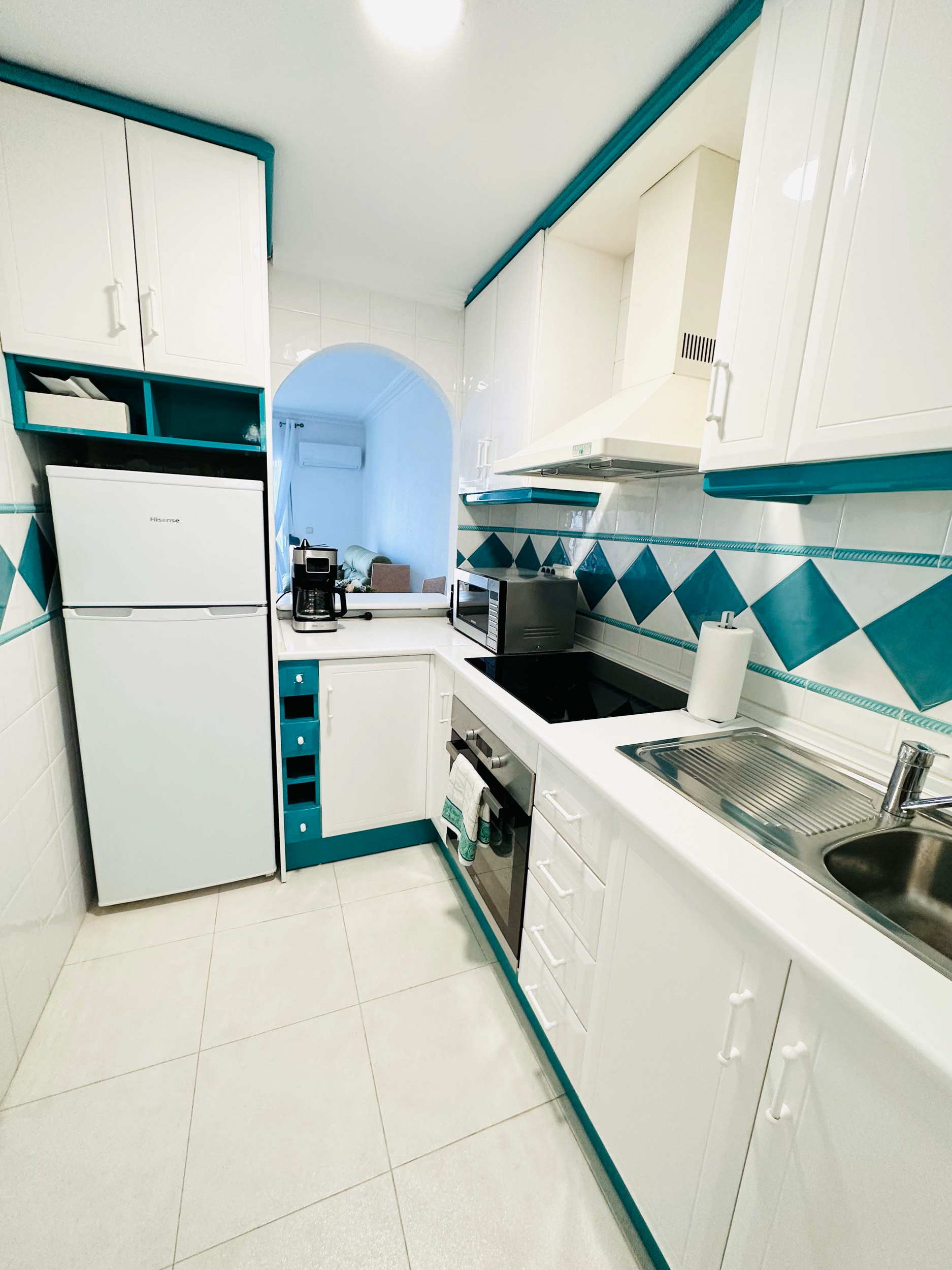 The apartment is located only 300 meters from the nearest Aldi grocery store. The distance to the center of Torrevieja is approx. 2.5 km, which can easily be done by bus. 200 meters away by the sea is the La Velata park area, which is popular, e.g. as a picnic spot and there is also a kiosk. Torremarket/Rafla, popular with Finns, is only 2 km away and the beach Playa Naufragos 1.5 km away, where you can walk along the seashore. Plenty of different restaurants can be found within a 1.5 km radius.