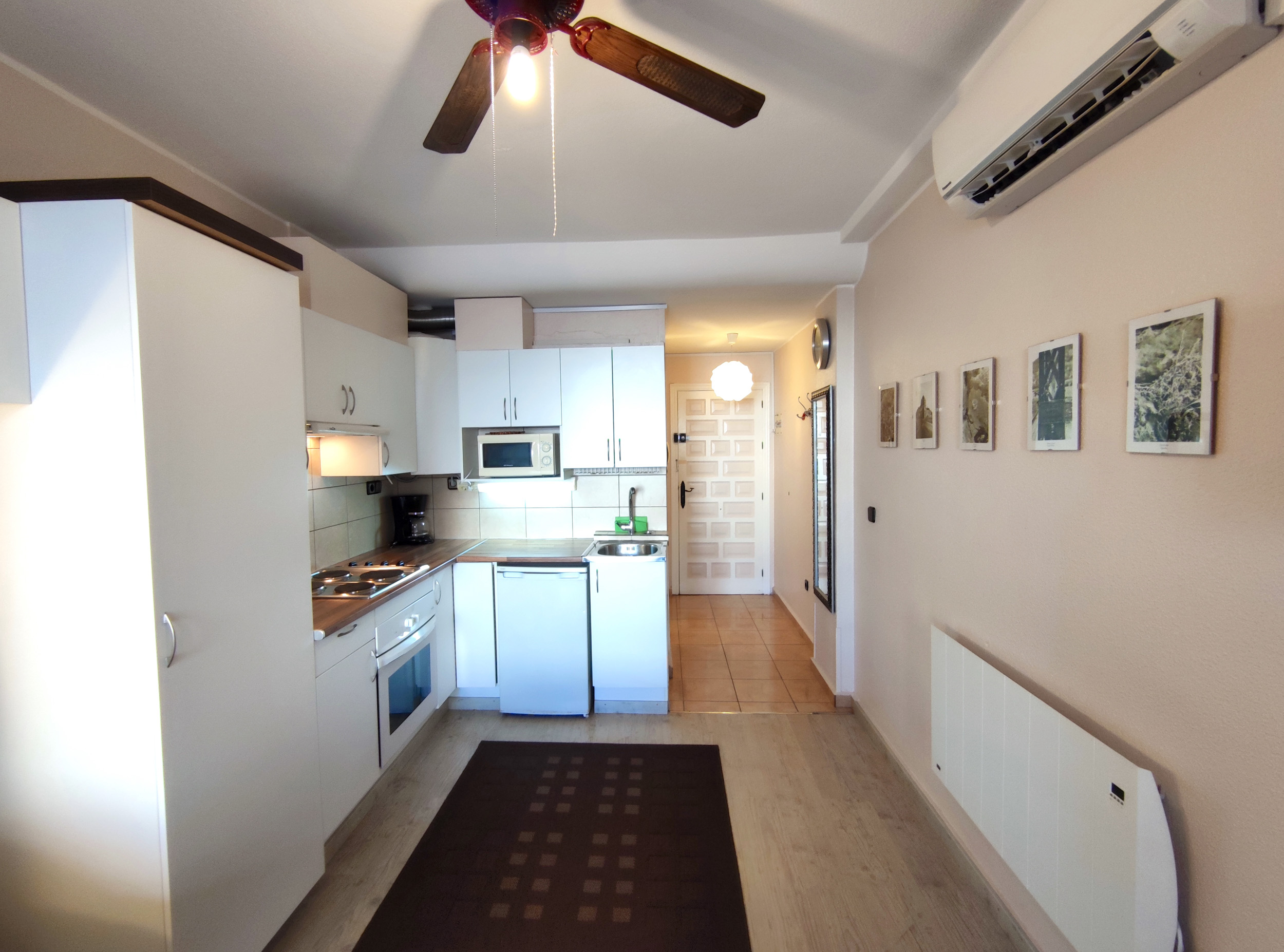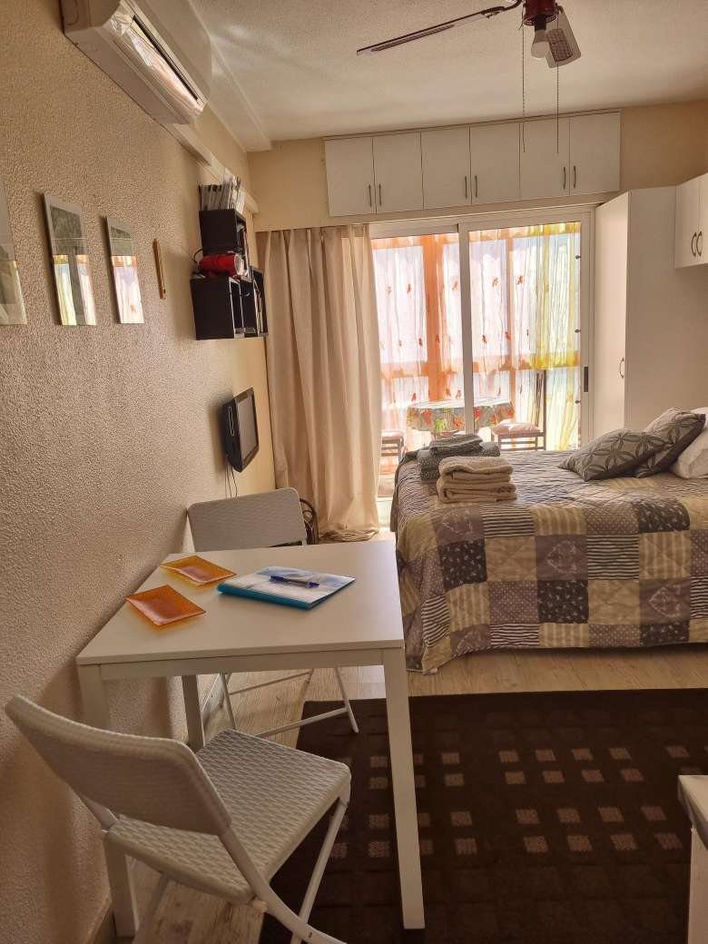 Small apartment on the second floor of a six-story apartment building near Playa de Los Locos beach with a glazed south-facing balcony. The apartment is a studio apartment with one room with kitchen equipment and a bathroom. Air conditioning/heating.
