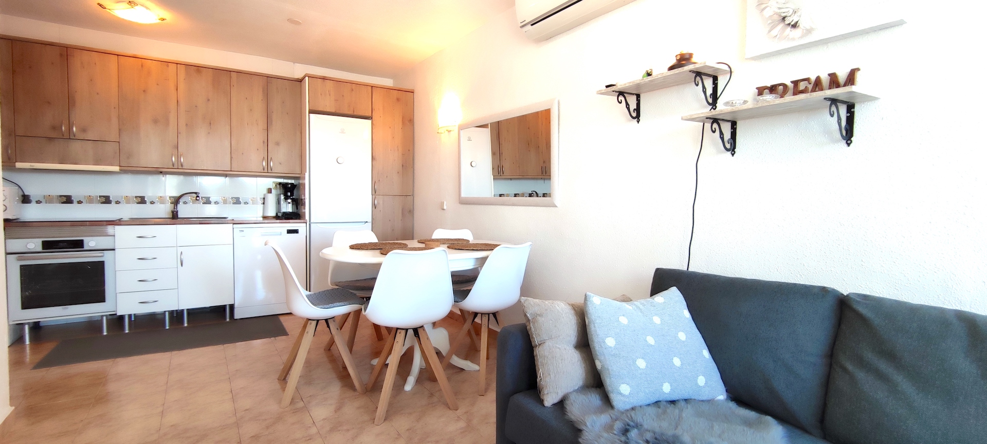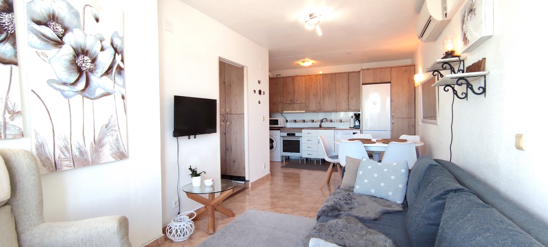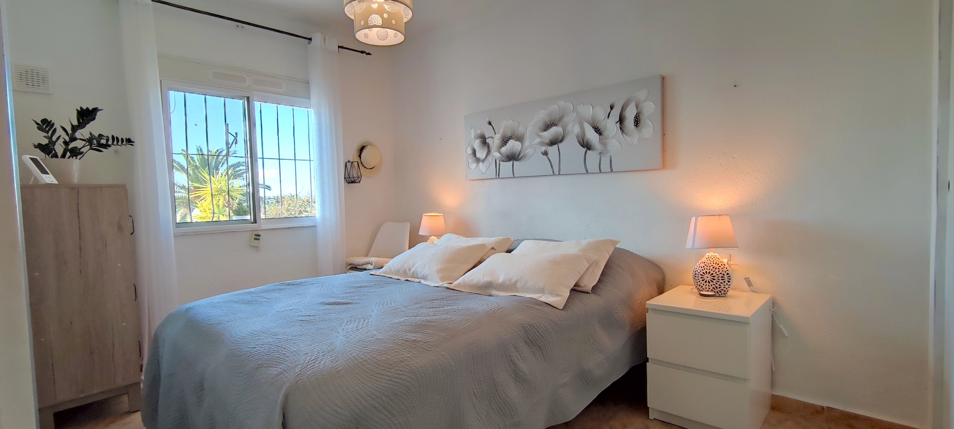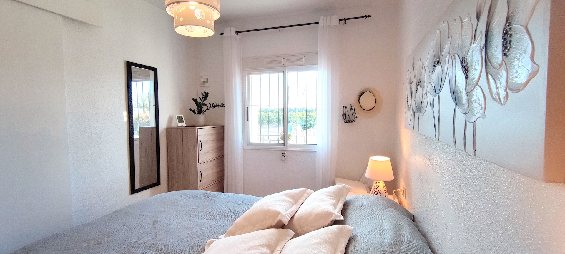In the area, there is a spacious communal swimming pool next to a restaurant and a tennis court. The distance to the city center is approximately 5.5 km. Regular local bus service is available. The nearest grocery store, Mercadona, is located opposite the Lago Jardin junction on the other side of the main road.
