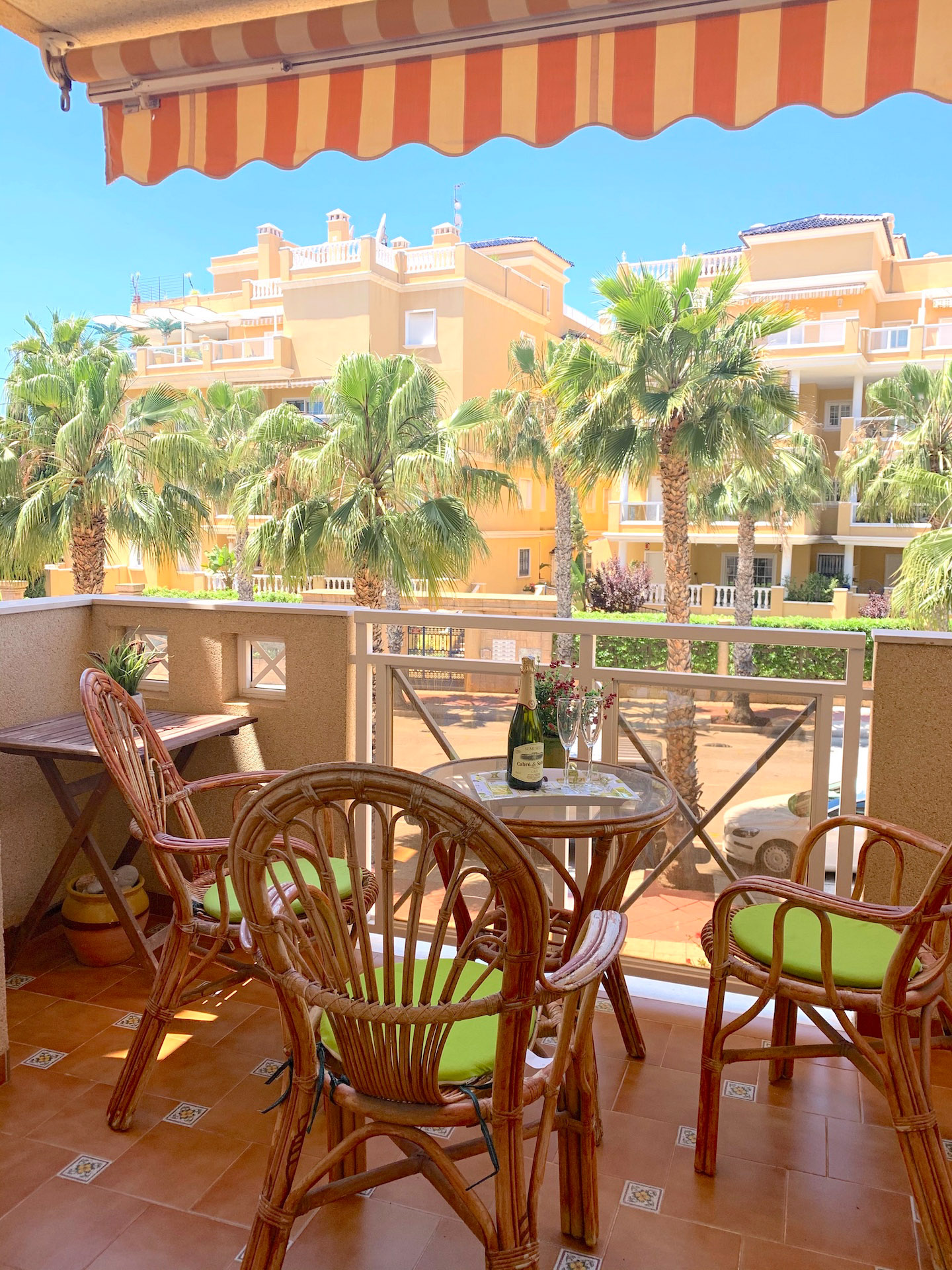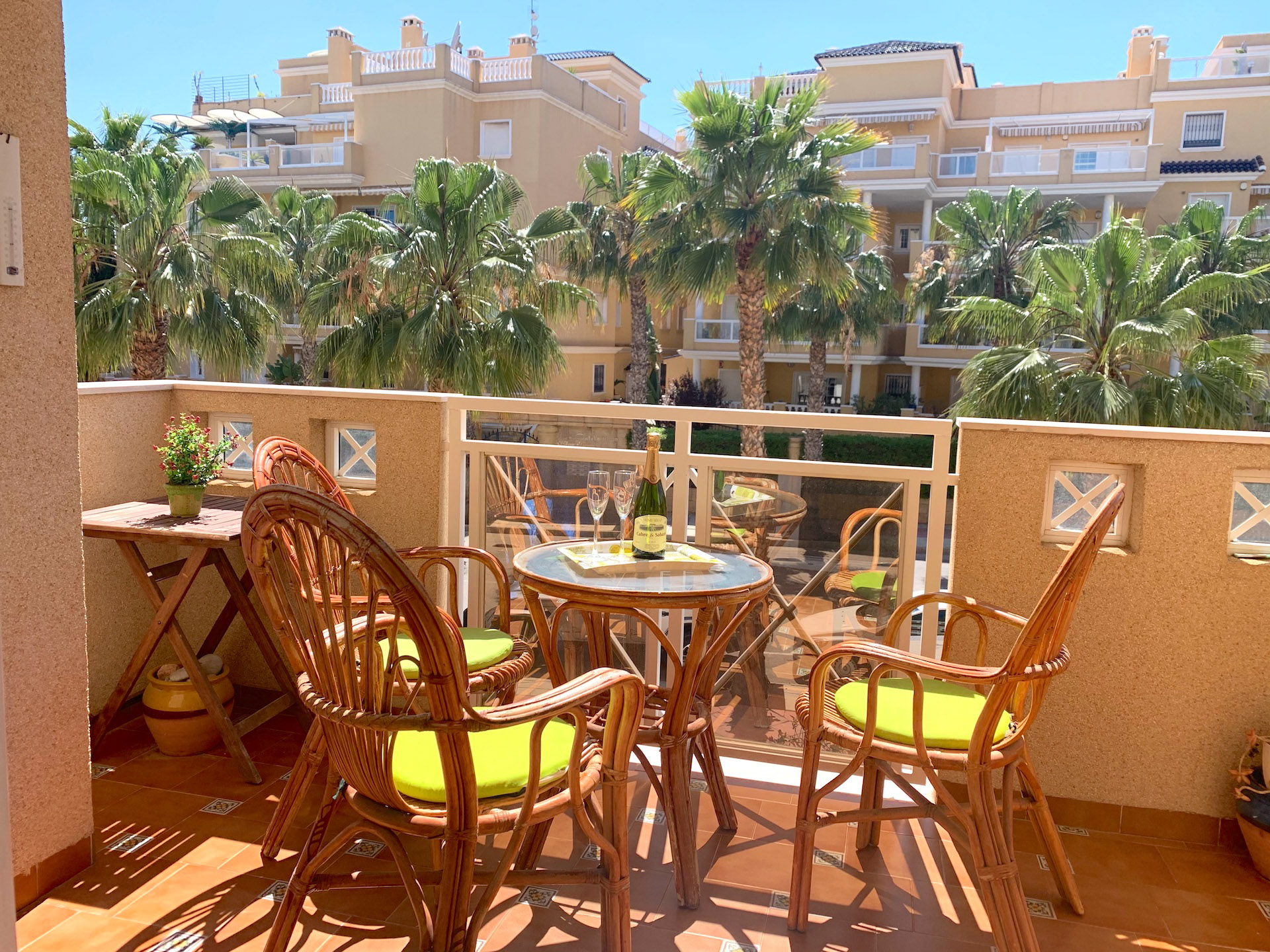 The apartment is only about 80 meters to the beach, 800 meters to the beach. The Campoamor golf courses are about three kilometers away.