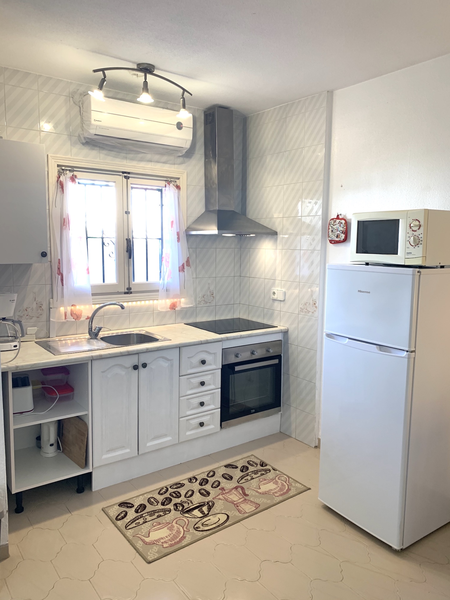 The apartment is located in the El Chaparral area, which is about 5.5 km from the center of Torrevieja. Local bus connection. Right next to it is the Parque Natural de Las Lagunas de La Mata y Torrevieja nature park, whose footpaths allow easy access to, for example, La Mata’s beach.