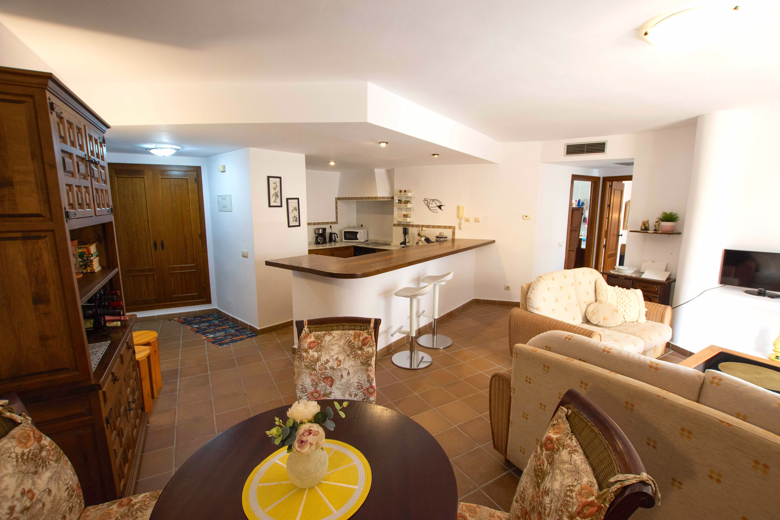 Closed area with 24h security. The apartment is only 300m from the seashore and the beach promenade. Several shops and restaurants within walking distance.