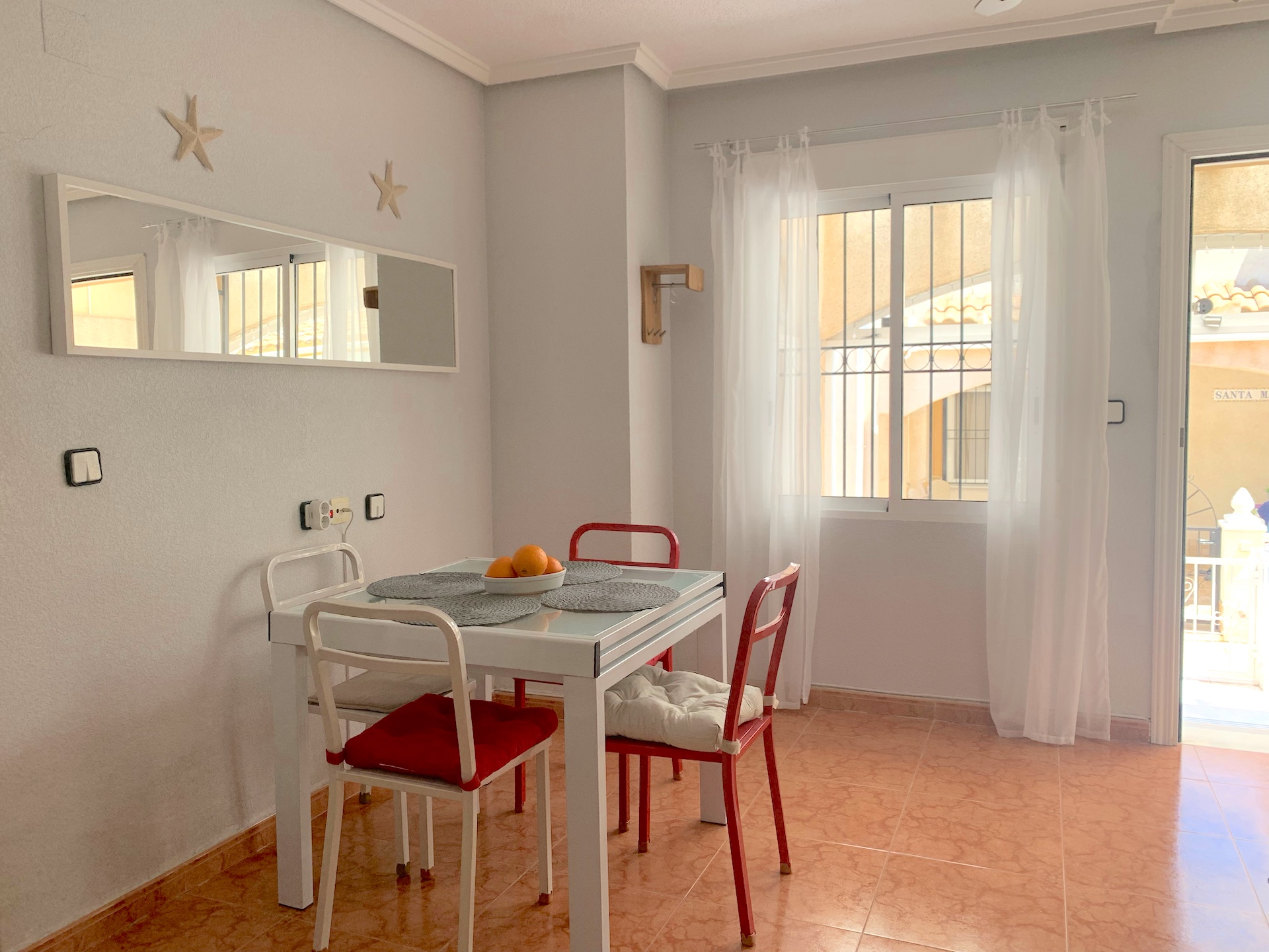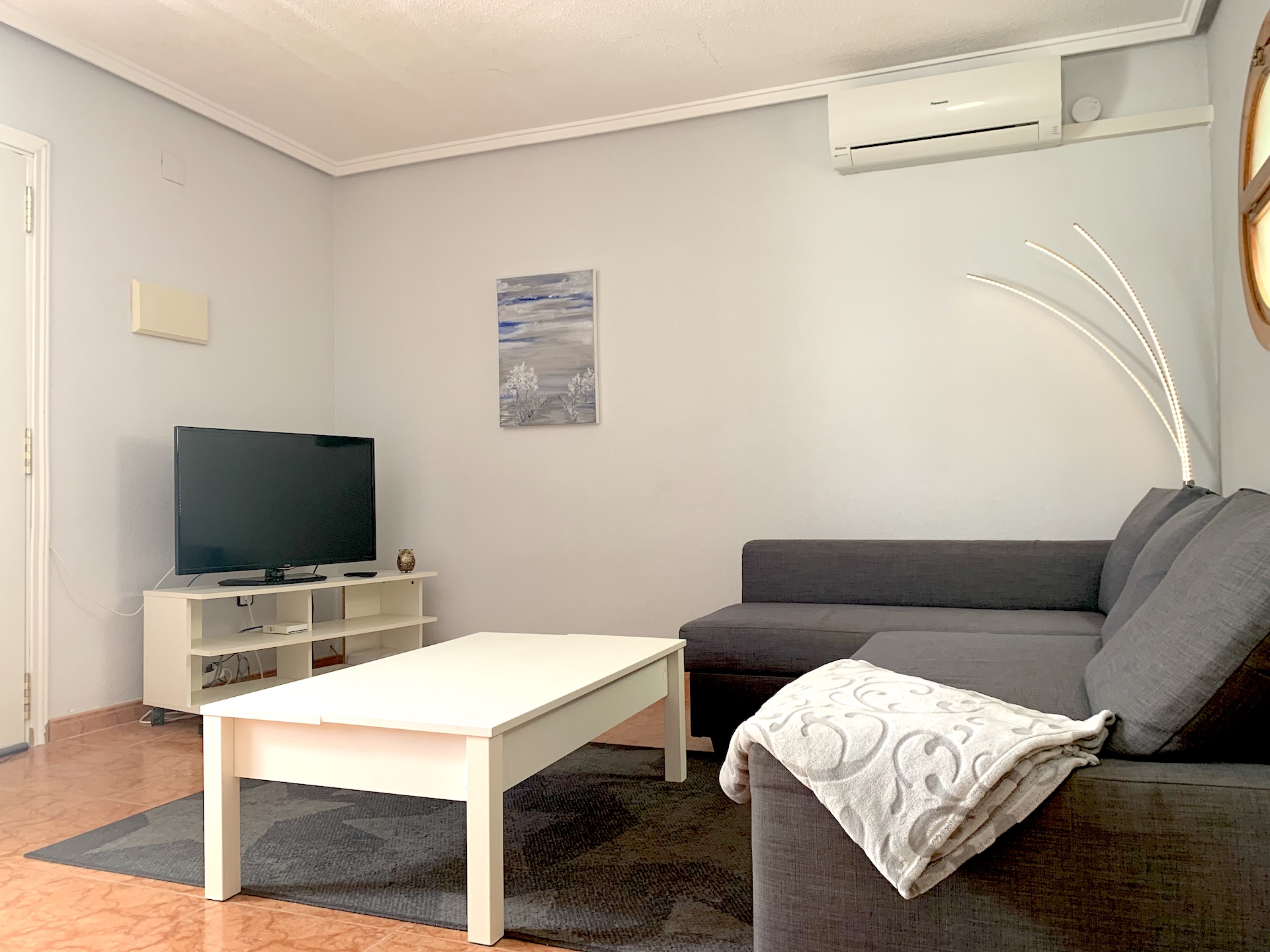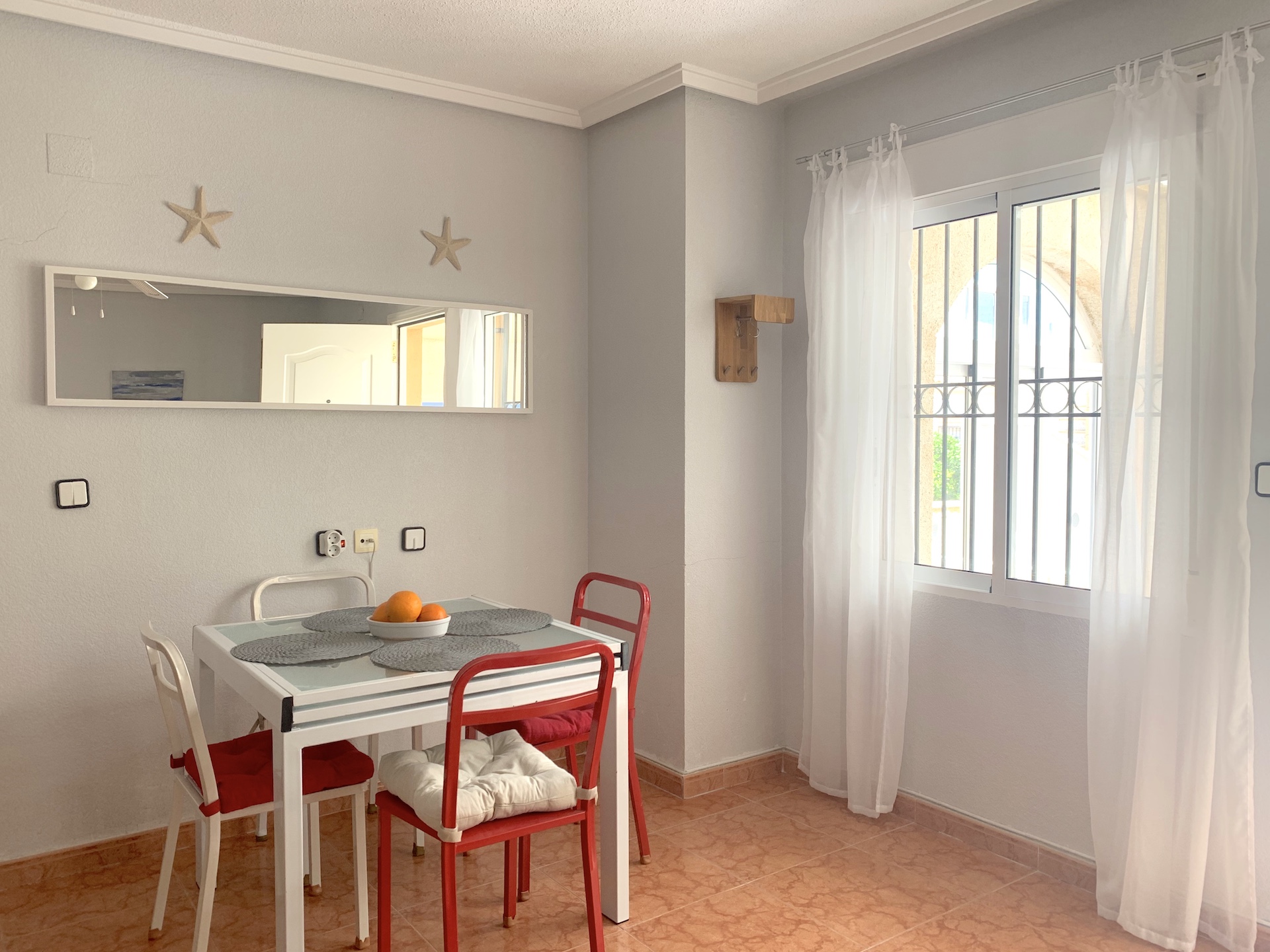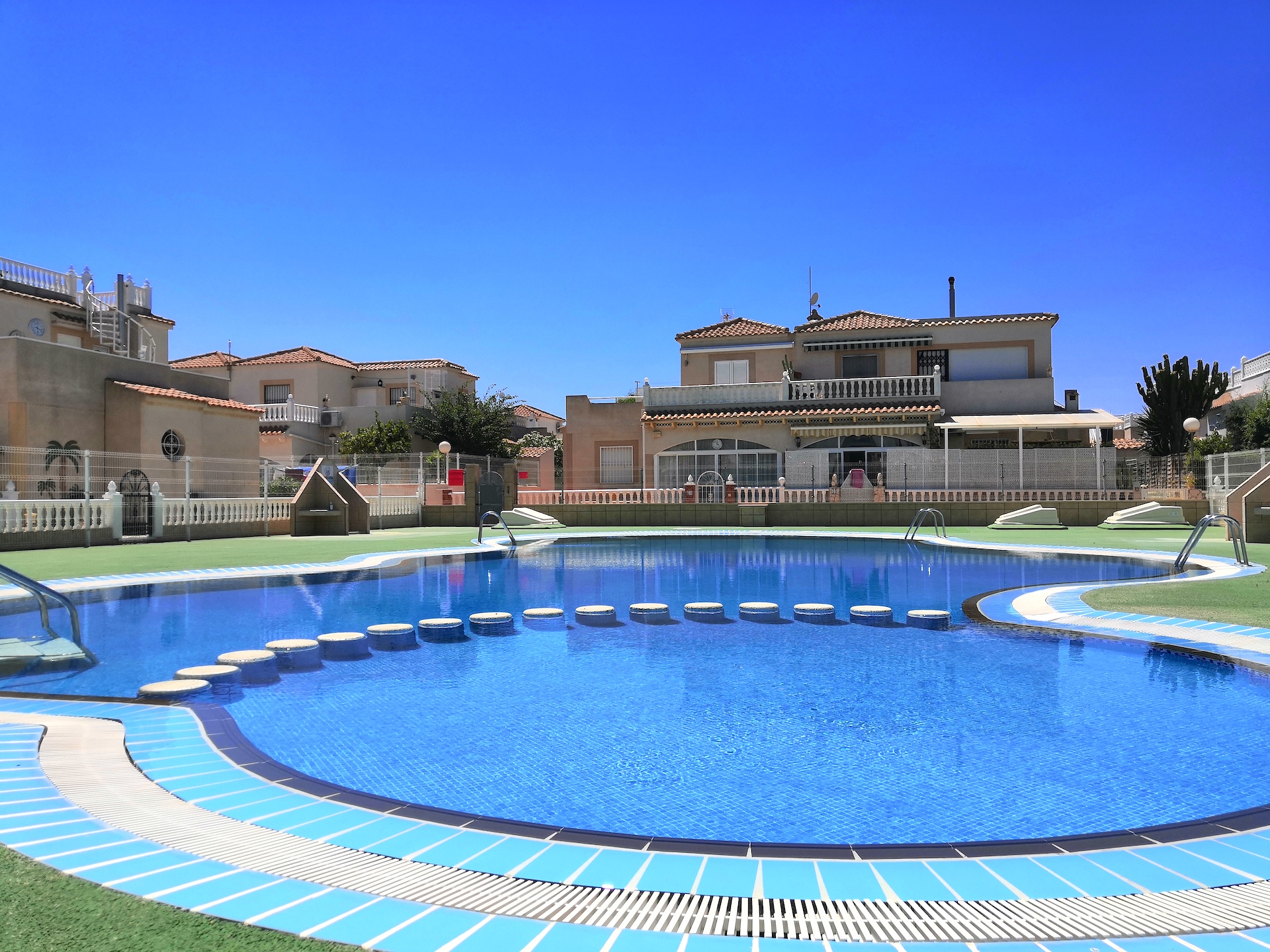 A quiet residential area with no through traffic and a large swimming pool area. Carrefour supermarket 50 meters away and all basic services: 2 shopping malls, carting and paintball track, restaurants, pharmacy, gas stations, fitness center, beauty salon, Lidl, clothing and interior stores, etc. within a kilometer radius. 1.2 kilometers to the popular Playa Flamenca beach. Good road connections to nearby golf courses and other destinations.